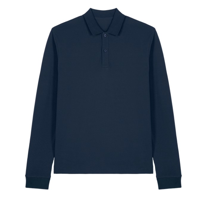 Polo lange mouw Ingezette mouw Platgebreide rib op de kraag Binnenin een dikke single jersey nekband Voorpand met 2 knopen in bijpassende lichaamskleur Splitten aan de zijnaden met een dikke single jersey-voering Enkelvoudige doorstikking op de schoudernaden 1x1 rib aan de mouwzoom Onderzoom met smalle dubbele doorstiksteek