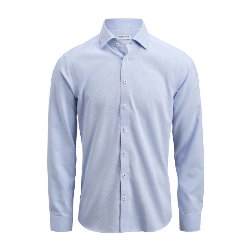 Een micro-gepatroonde overhemd in een jacquard-weefsel, gemaakt van een mix van biologisch katoen en gerecycled polyester. Het heeft onze populaire verborgen button-down kraag en discrete details zoals een contrastrijke sluitlijn en knoopdraad. Een effen gekleurd overhemd met een subtiele dobby-structuur, gecombineerd met een zachte kraag en manchetten, geeft het overhemd een slimme en moderne uitstraling. Wanneer je het overhemd in handen krijgt, zul je meteen merken dat er meer aan is dan het oog vangt. Het is in eerste instantie veerlicht, heeft een zijdezachte aanraking dankzij lyocell en een ongelooflijk stretch-effect voor jouw comfort, waardoor dit overhemd een meester in prestaties is. Het overhemd is ook behandeld voor eenvoudig onderhoud, dus je kunt het gewoon wassen en dragen als je wilt.