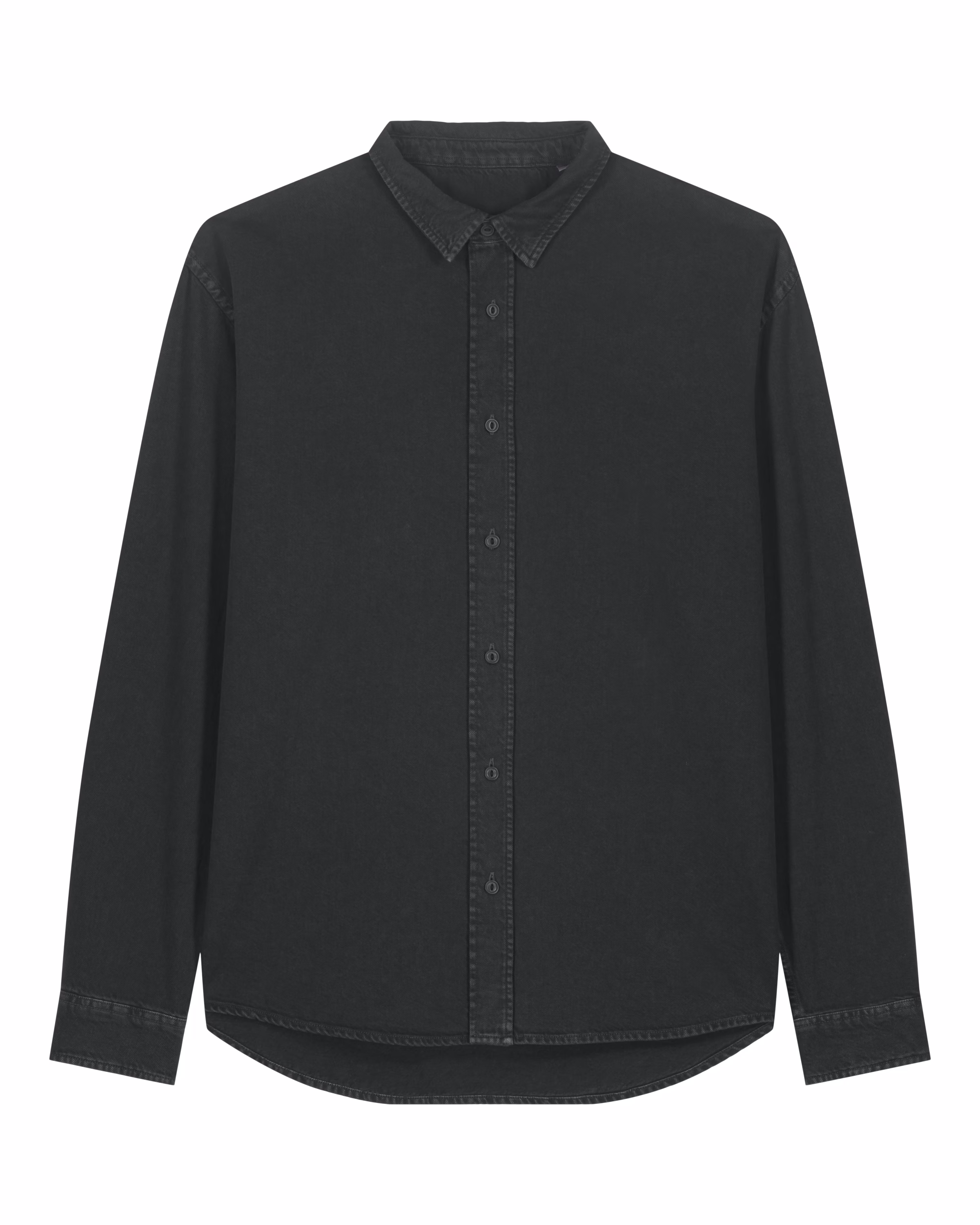 Puntkraag met enkelvoudig stiksel Kraagstaander Knooplijst met enkelvoudig stiksel langs beide kanten Ingezette mouwen met naar voren verplaatste schoudernaden Rugpas met binnenpas van eigen stof Mouwsplit met één knoop Manchetten met twee knopen en afgeronde hoeken Dubbele plooien aan manchetten